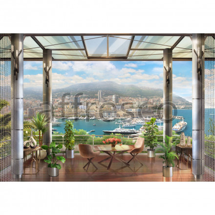 Вид с балкона на море и город