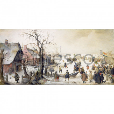 Хендрик Аверкамп, Зимний пейзаж с конькобежцами (Hendrick Avercamp, Winter Scene on a Canal)